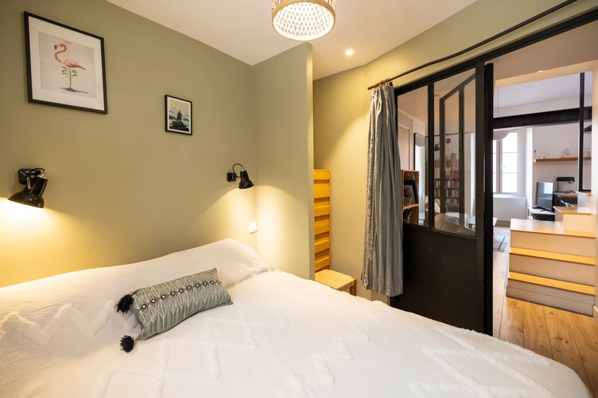 Entrée, séjour, cuisine américaine, 3 chambres, salle de douche, wc, rangements, cellier.