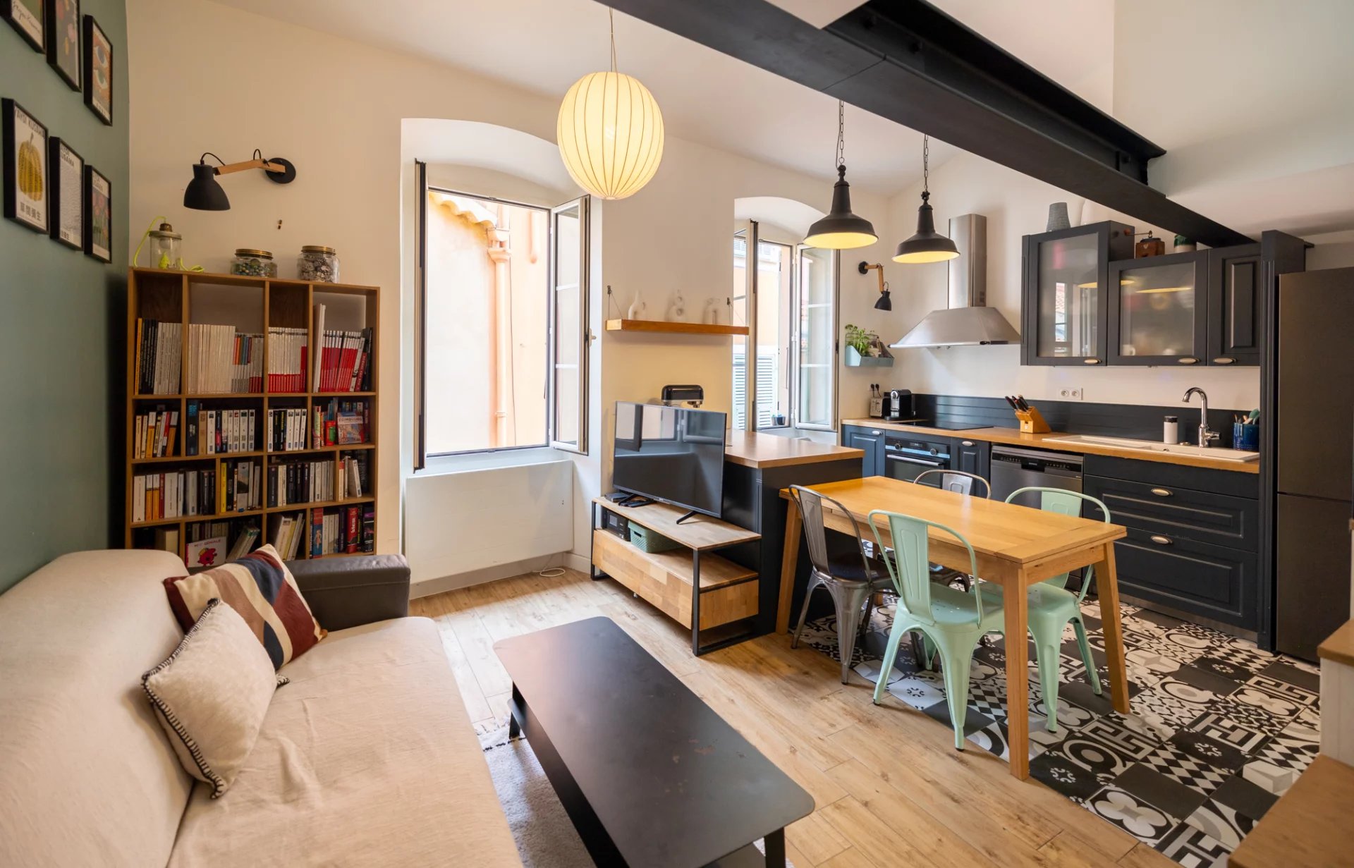 A proximité immédiate de la mer, des plages de Villefranche sur mer et des commerces, bel appartement de 74m² dont 63m² selon la loi CARREZ en très bon état.